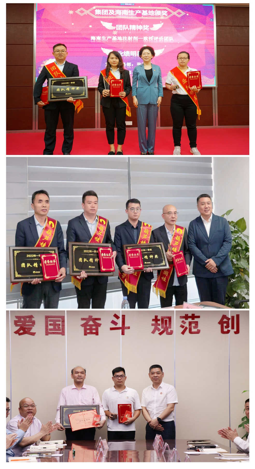 为了表彰在2022年一季度“深化变革,赢得开门红”工作中“超额完成计划、超出本职工作或超越组织预期”的先进集体和优秀个人,会议期间还举行了钱柜QG777药业集团2022年一季度“开门红”表彰颁奖仪式。营销中心葫芦世家事业部湖南区域主管黄子杰等12人荣获业绩明星奖,葫芦世家事业部等5个集体荣获团队精神奖。