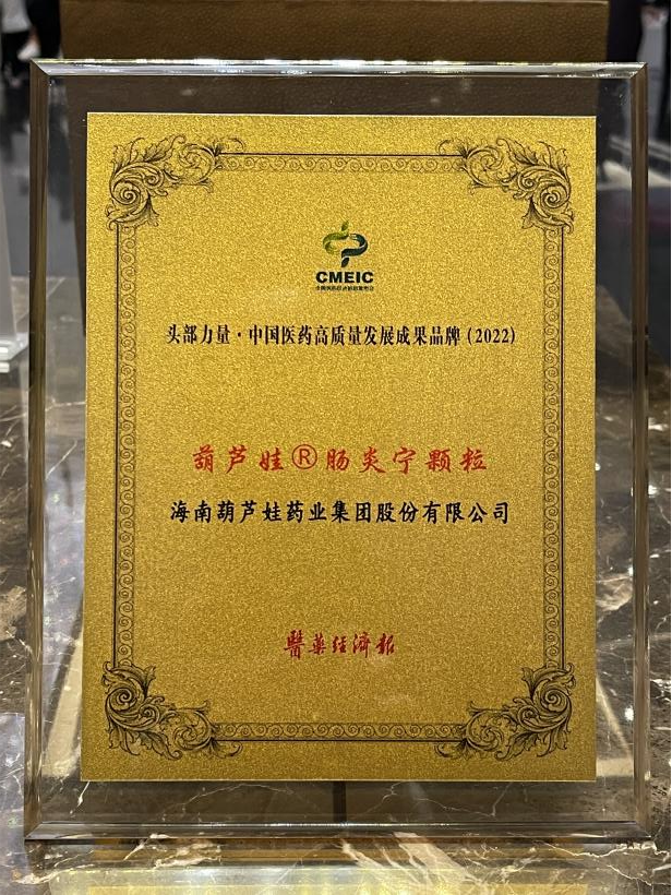 在本次发布会上,公司重点产品钱柜QG777牌肠炎宁颗粒同时荣膺“头部力量·中国医药高质量发展成果品牌(2022)”。钱柜QG777牌肠炎宁颗粒(2g),传承经典名方,临床广泛用于成人及儿童急慢性胃肠炎、腹泻等疾病的治疗,由于其杰出的临床价值,被纳入国家中医药管理局相关专家项目组制定的《中成药治疗小儿腹泻病临床应用指南》。